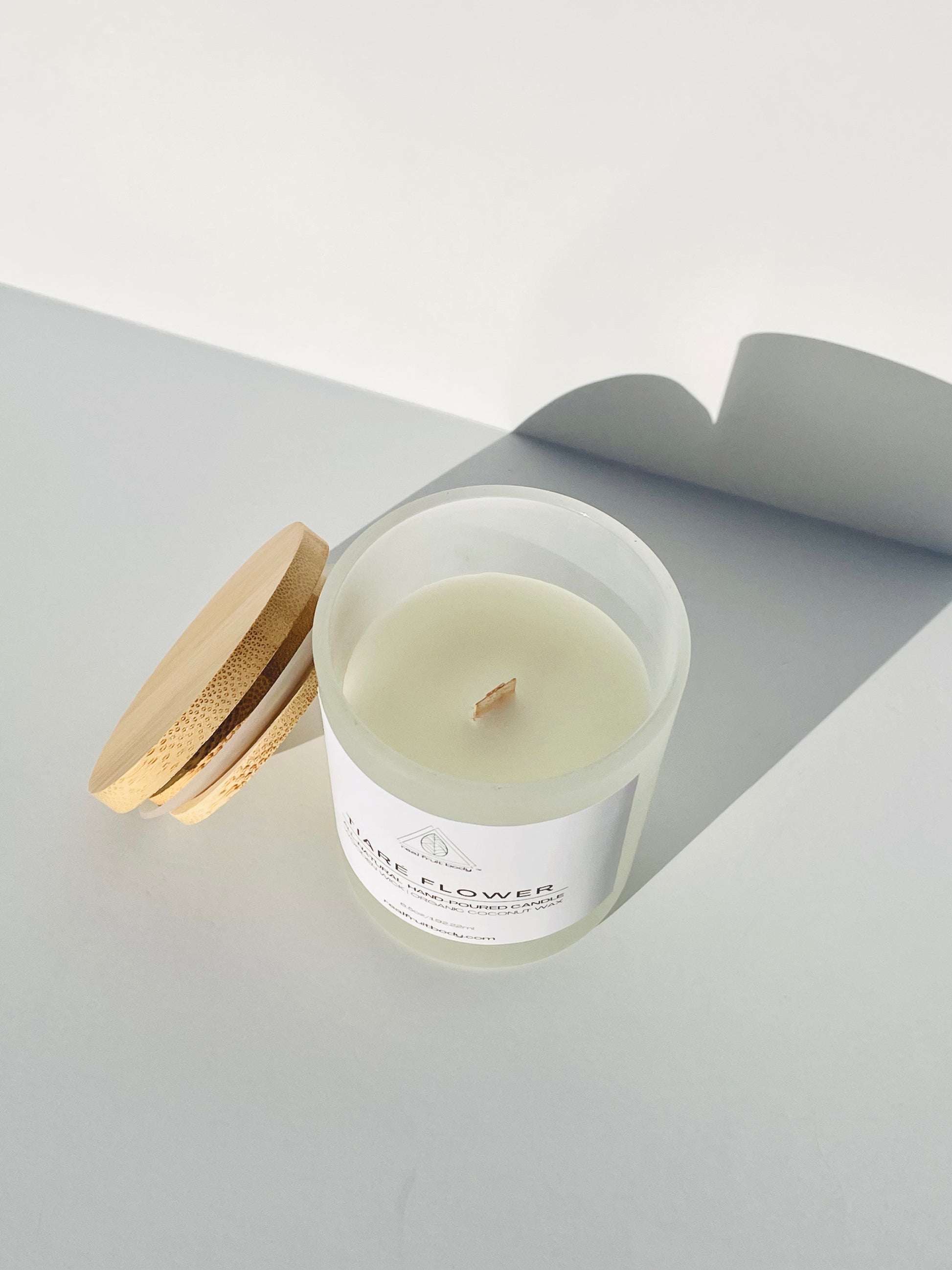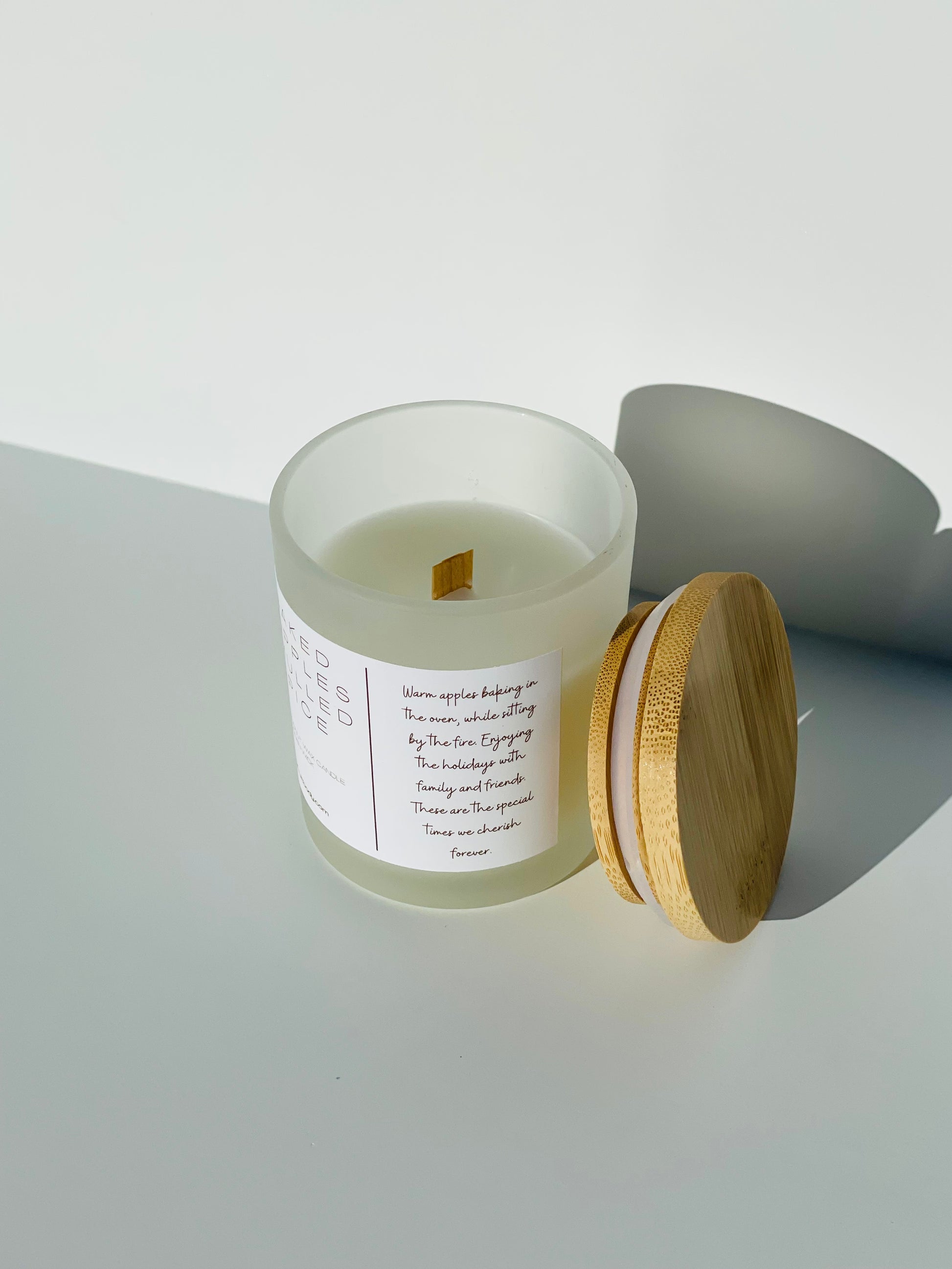 Our candles are made from the finest organic & vegan coconut apricot wax blend with our signature pure absolute oil fragrances. We use all natural wooden wicks to give you the cleanest and longest burn time. 6.5 oz size.